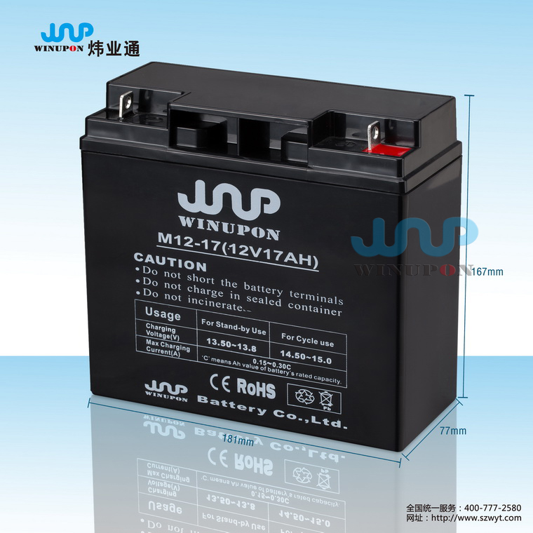 規(guī)格型號 | 12V17AH | 外形尺寸(±2mm) | 約重4.60KG | |||