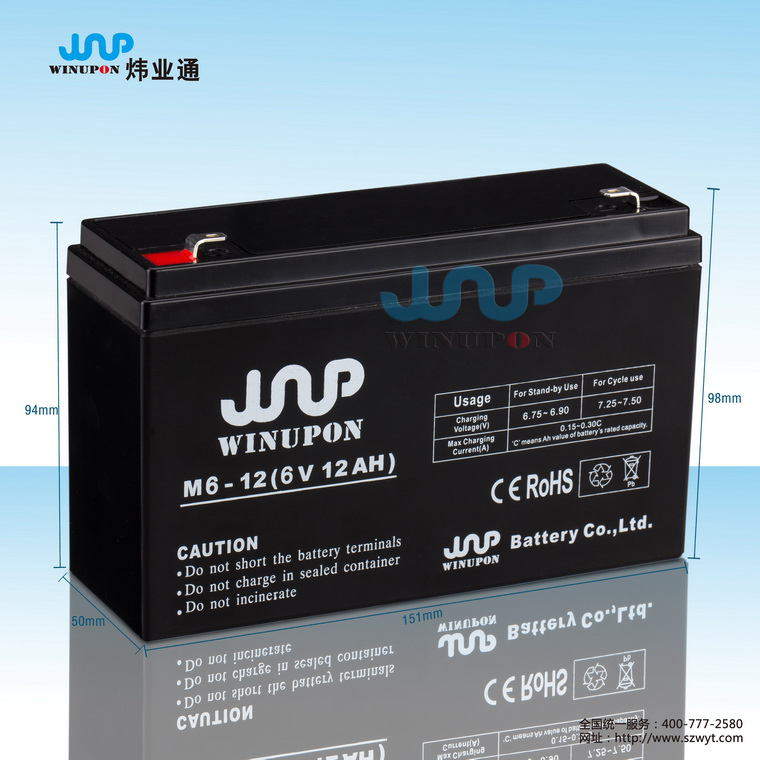 規(guī)格型號(hào) | 6V12AH | 外形尺寸(±2mm) | 約重1.60KG | |||