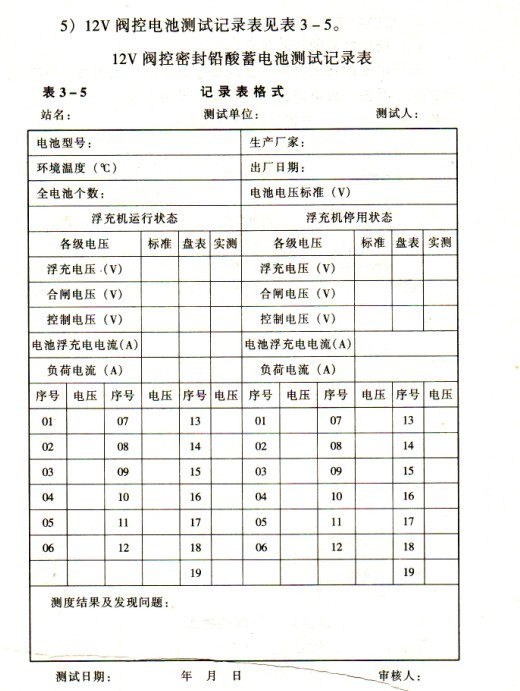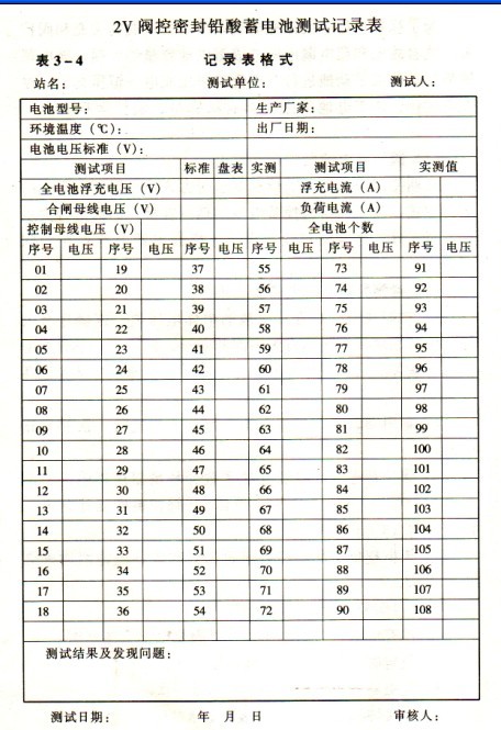 4)2V閥控電池測試記錄表見表3-4。2v閥控密封鉛酸蓄電池測試記錄表