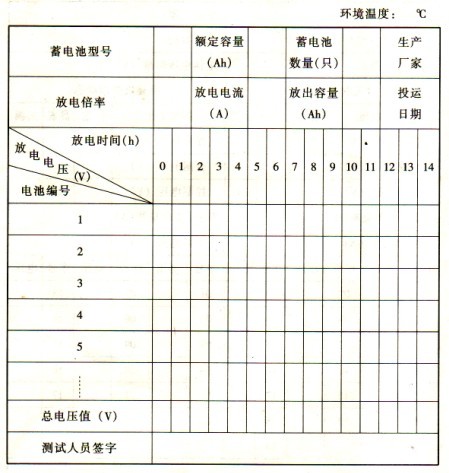2)放電時(shí)應(yīng)每小時(shí)對電池測量一次。