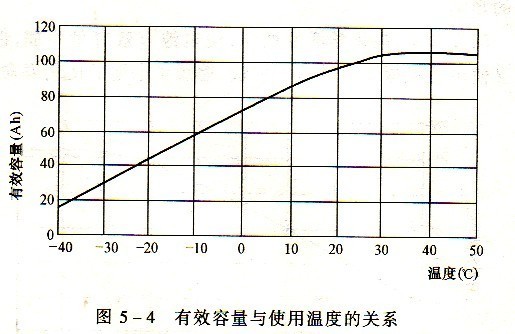 (3)圖5—4為蓄電池的容量與溫度的關(guān)系曲線。