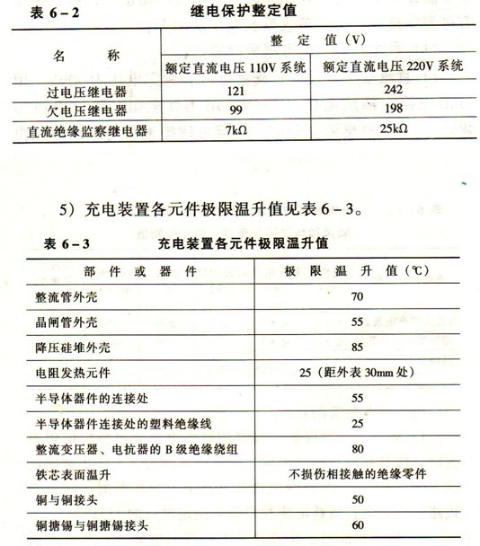 4)充電裝置的保護(hù)及聲光報(bào)警功能。充電裝置應(yīng)具有過(guò)流、過(guò)壓、欠壓、絕緣監(jiān)察、交流失壓、交流缺相等保護(hù)及聲光報(bào)警的功能。繼電保護(hù)整定值見(jiàn)表6-2